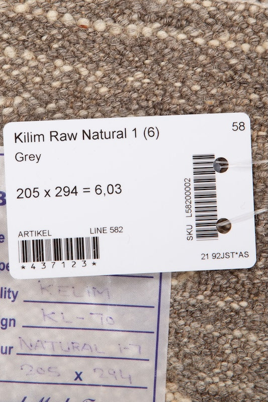 Kelim matto, Natural Grey #622 / 204x294