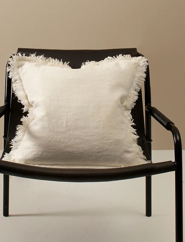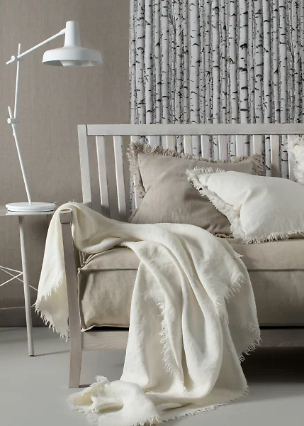 Suosittujen Merlin hapsutyynynpäällisten kaveriksi nyt klassinen torkkupeitto samaa materiaalia pellavan ja villan sekoitetta. Sävynä kaunis luonnonvalkoinen.