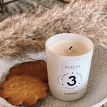 Kotimaisen MALIAn soijavahasta käsityönä valmistettu tuoksukynttilä Piparkakku-tuoksussa. Koko Mini.
