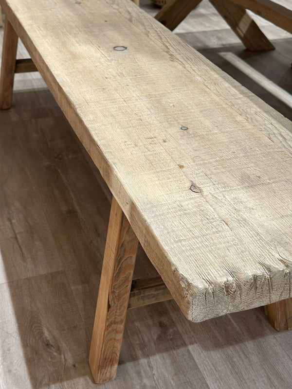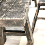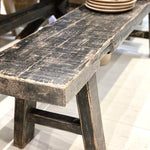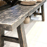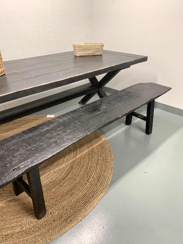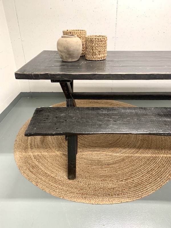 Ihana kuluneen mustan sävyinen tukeva penkki kauniilla, eläväisellä pinnalla. Varaistuimeksi, eteisen penkiksi, sängyn päätyyn,... Rosoisista puuhuonekaluistamme syntyy luonnollinen ilme kotiisi! Tämä kaunotar on luonnollisesti kulunut vuosien saatossa.