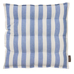 A single seat cushion featuring blue full-color woven stripes, crafted from 100% cotton.