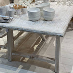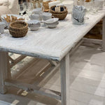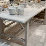 Snowdrops Copenhagenin ihastuttava off white -sävyinen ruokapöytä luo kotiisi pehmeän, luonnollisen tunnelman. Kansiosa on vanha ovi ja se on tehty jalavasta. Ihanan rouhea valkovahattu yksilö suorilla jaloilla.
