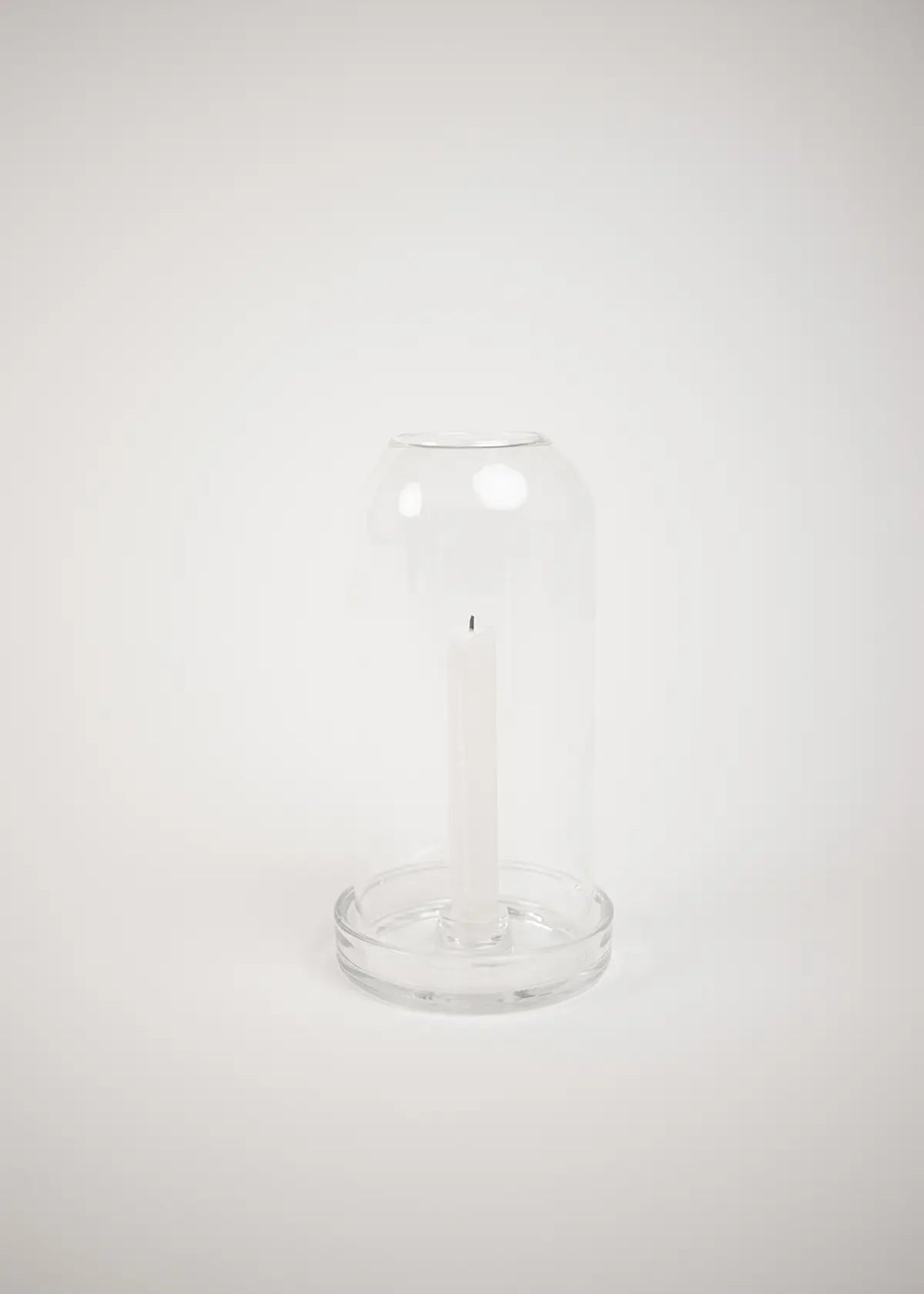 Klassinen hurrikaanilyhty läpinäkyvää lasia.