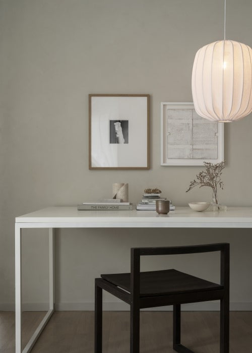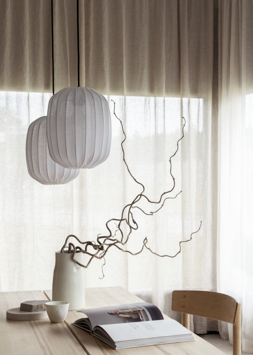 Kaunis kattovalaisin, jossa metallikehikko ja pellavakangas. Valo hohtaa pellavakankaan läpi luoden eläväisen ilmeen. Prisma 35 sopii täydellisesti pienen keittiönpöydän yläpuolelle, pareittain keittiösaarekkeen päälle tai olohuoneen pimeään nurkkaan.