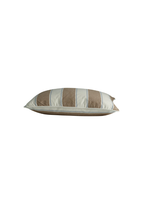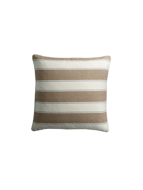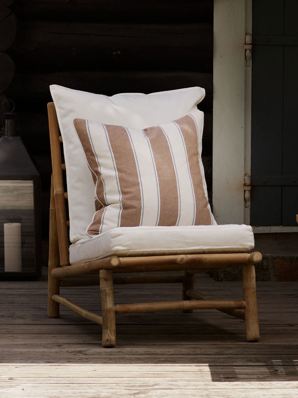 Tine K Homen kaunis raidallinen tyynynpäällinen kierrätettyä puuvillaa. Kaunis ruskea-sini-valkoraidallinen tyynynpäällinen on raikas lisä sisustukseesi. Koko 50x50 cm. Yhdistä muiden Reco-sarjan tuotteiden kanssa.