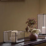 Tine K Homen matala avolyhty rustiikkisilla reunoilla. Korkeus 15 cm. Lyhdyn lasiseinät heijastavat kauniisti kynttilänvaloa ja lisäävät tunnelmaa kotiin kun ulkona pimenee. Cafelatten suosikki <3