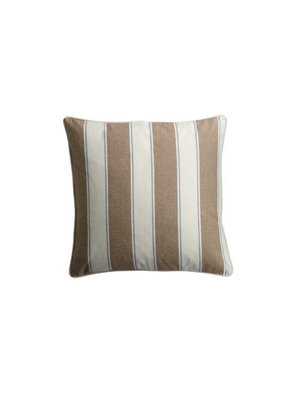 Tine K Homen kaunis raidallinen tyynynpäällinen kierrätettyä puuvillaa. Kaunis ruskea-sini-valkoraidallinen tyynynpäällinen on raikas lisä sisustukseesi. Koko 40x60 cm. Yhdistä muiden Reco-sarjan tuotteiden kanssa.