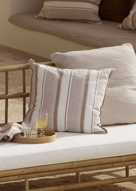 Tine K Homen kaunis uusi raitakuosi nyt myös tyynyissä. Raikasta ilmettä kotiin ja terassille!