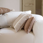 Tine K Homen kaunis uusi raitakuosi nyt myös tyynyissä. Raikasta ilmettä kotiin ja terassille!