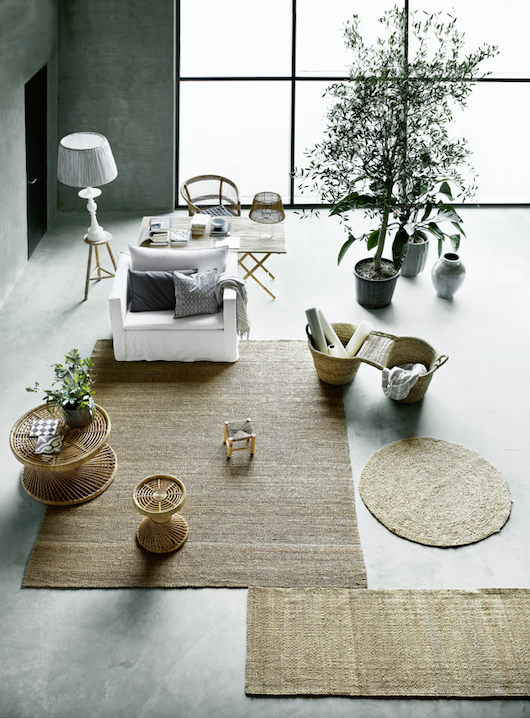 Tine K Homen rakastetut pyöreät juuttimatot useassa eri koossa. Tämä halkaisijaltaan 220 cm matto sopii täydellisesti niin aulaan, keittiöön, olohuoneeseen. Tai vaikkapa katetulle parvekkeelle tai kauniina päivänä terassille rytmittämään tilaa.