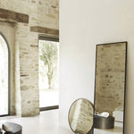 Tine K Homen yksinkertaisen tyylikäs pyöreä peili, jossa ohut metallinen kullanhohtoinen kehys.