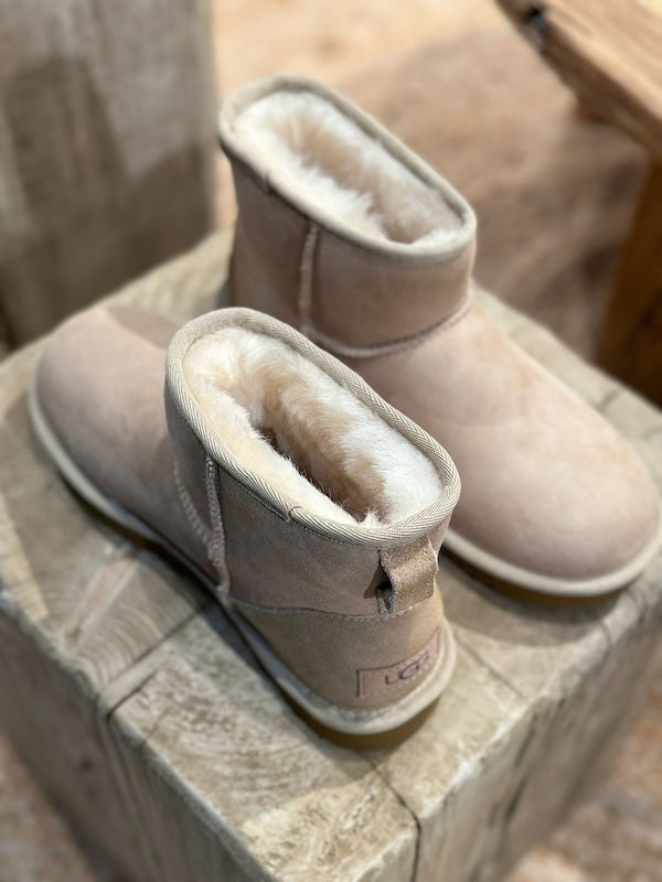 UGG Classic Mini II Boot -nilkkurit, joissa sisällä lämmin lampaannahkavuori. Helppo vetää jopa paljaaseen jalkaan!