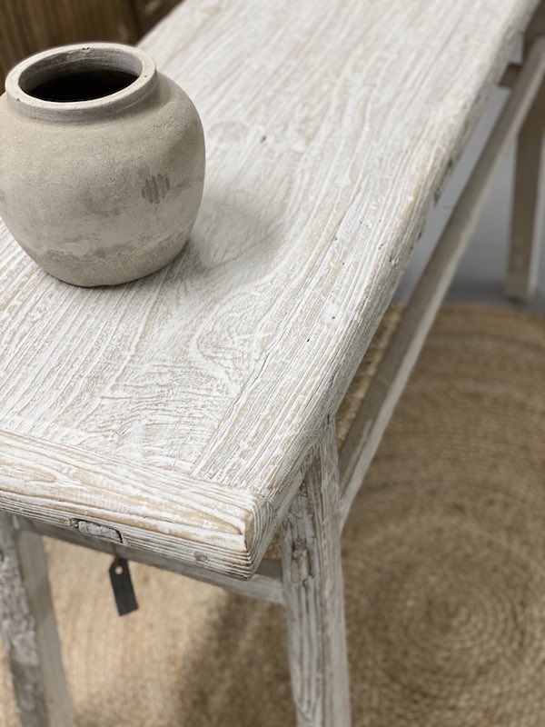 Ihana valkovahattu pidempi sivupöytä kauniilla, eläväisellä pinnalla. Sijoita se eteiseen, keittiöön tai makuuhuoneeseen aina tarpeen ja fiiliksen mukaan. Rosoisista puuhuonekaluistamme syntyy luonnollinen ilme kotiisi! Tämä kaunotar on erittäin siisti yksilö. Voit halutessasi muokata valkoista sävyä rosoisemmaksi raaputtamalla tai hiomalla pintaa varovasti.