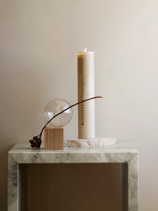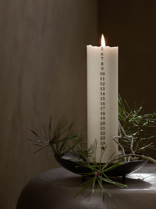 Tine K Homen adventtikynttilä hiekan värissä. Polta päivittäin pieni pala, rentoudu hetki ja valmistaudu jouluun. <3