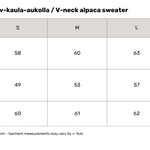 Ajaton pitkähihainen Allia-alpakkasekoiteneule V-kaula-aukolla yhdistää pehmeyden, lämmön ja keveyden. V-kaula-aukko tuo klassista eleganssia ja tekee neuleesta helposti kerrostettavan erilaisiin asukokonaisuuksiin. Hienostunut Cream-sävy sopii moniin tyyleihin, ja ylellinen alpakkasekoite tuntuu miellyttävältä ihoa vasten.