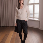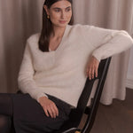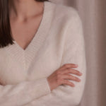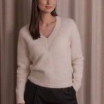 Alpakkasekoiteneule v-kaula-aukolla, Cream