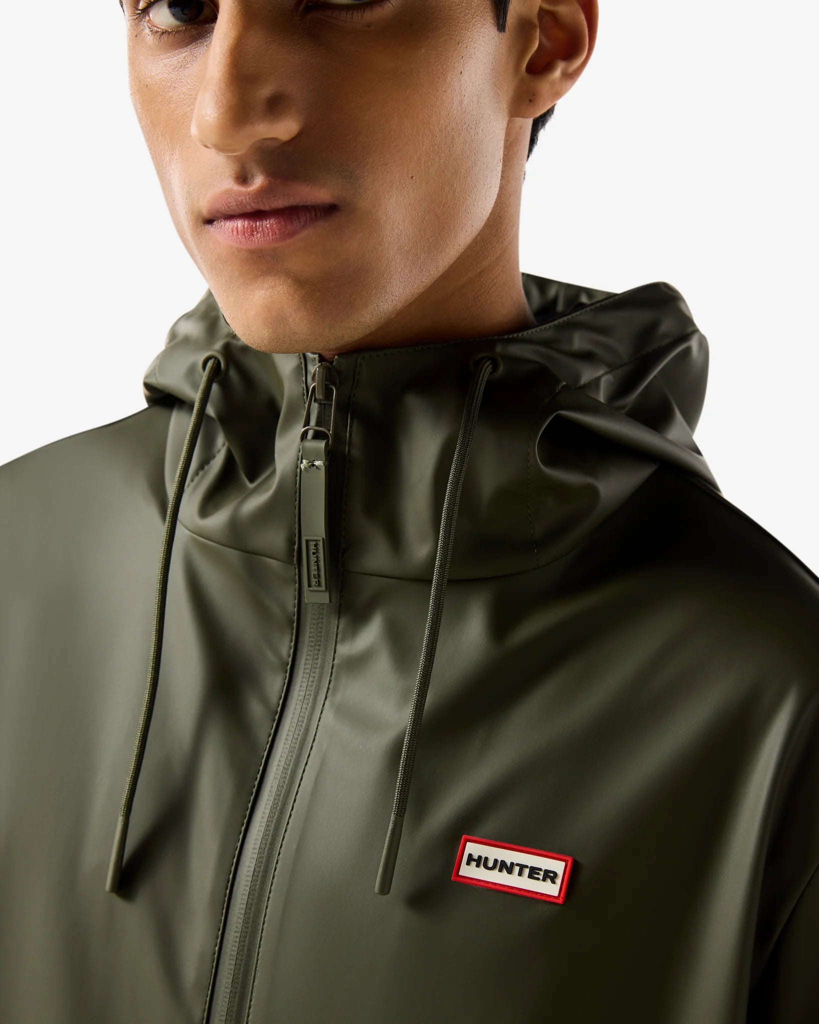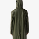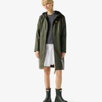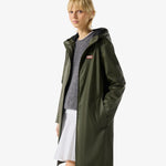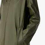 Hunterin klassinen unisex sadetakki kauniissa maastonvihreässä sävyssä. Täysin vedenpitävä. Sadetakissa on rento midi-pituinen malli ja säädettävä huppu. Edessä vetoketju ja sivuissa taskut. Tyylikäs valinta arvaamattomalle säälle tai esimerkiksi koiran ulkoilutukseen.