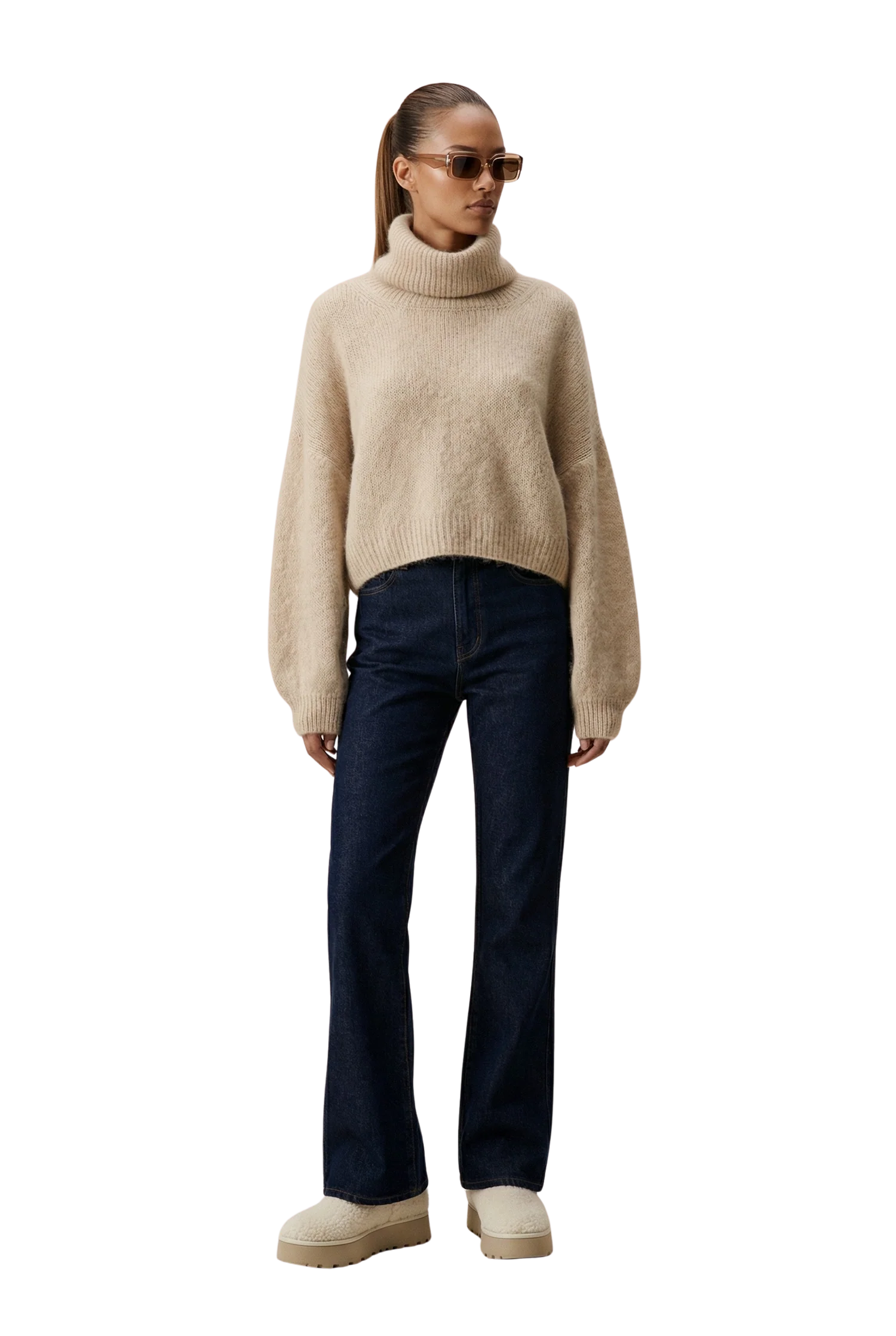 Andrea Rollneck Cropped alpakkaneule, Beige