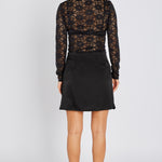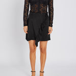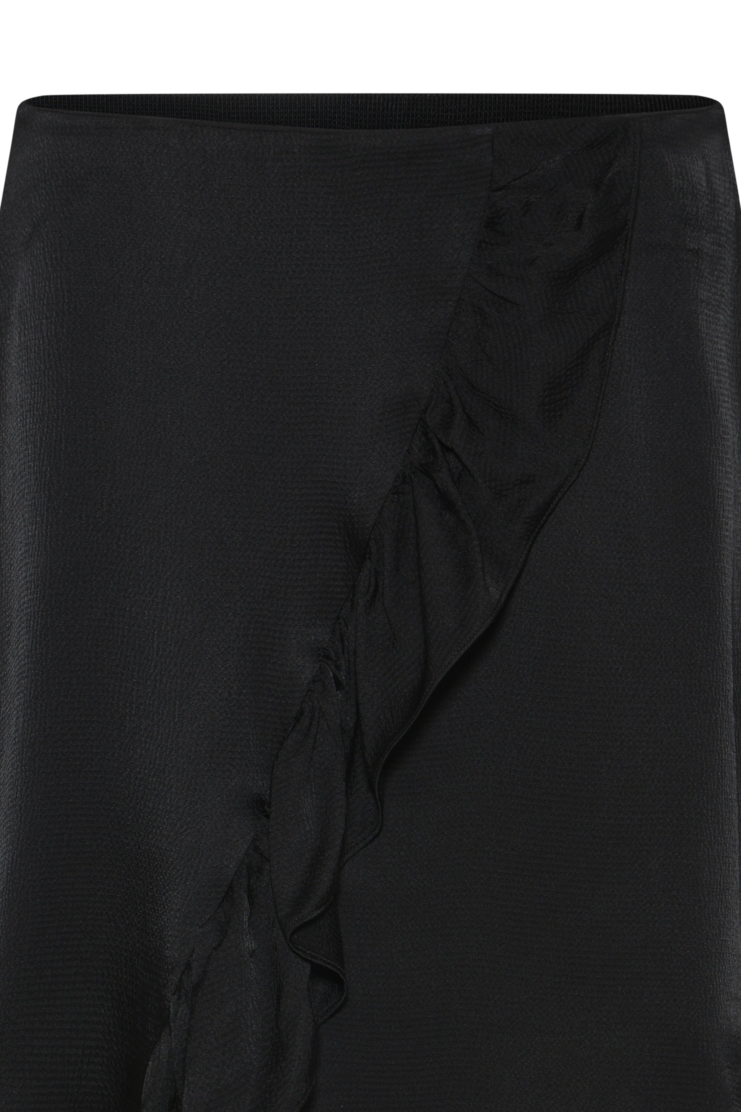 Kaunis musta viskoosihame kauden juhlasesonkiin. Hameen halki kulkeva kaunis röyhelöyksityiskohta tuo asuun juhlavuutta ja naisellisuutta.