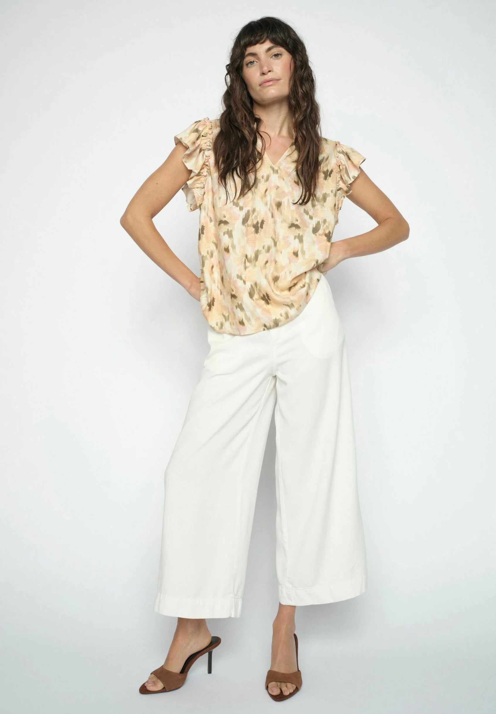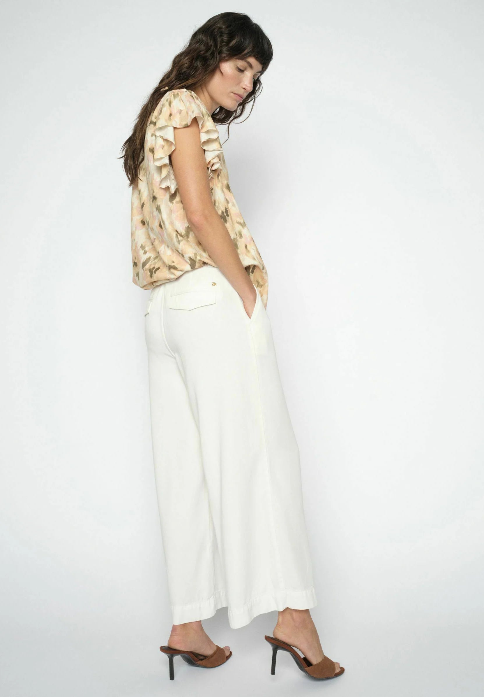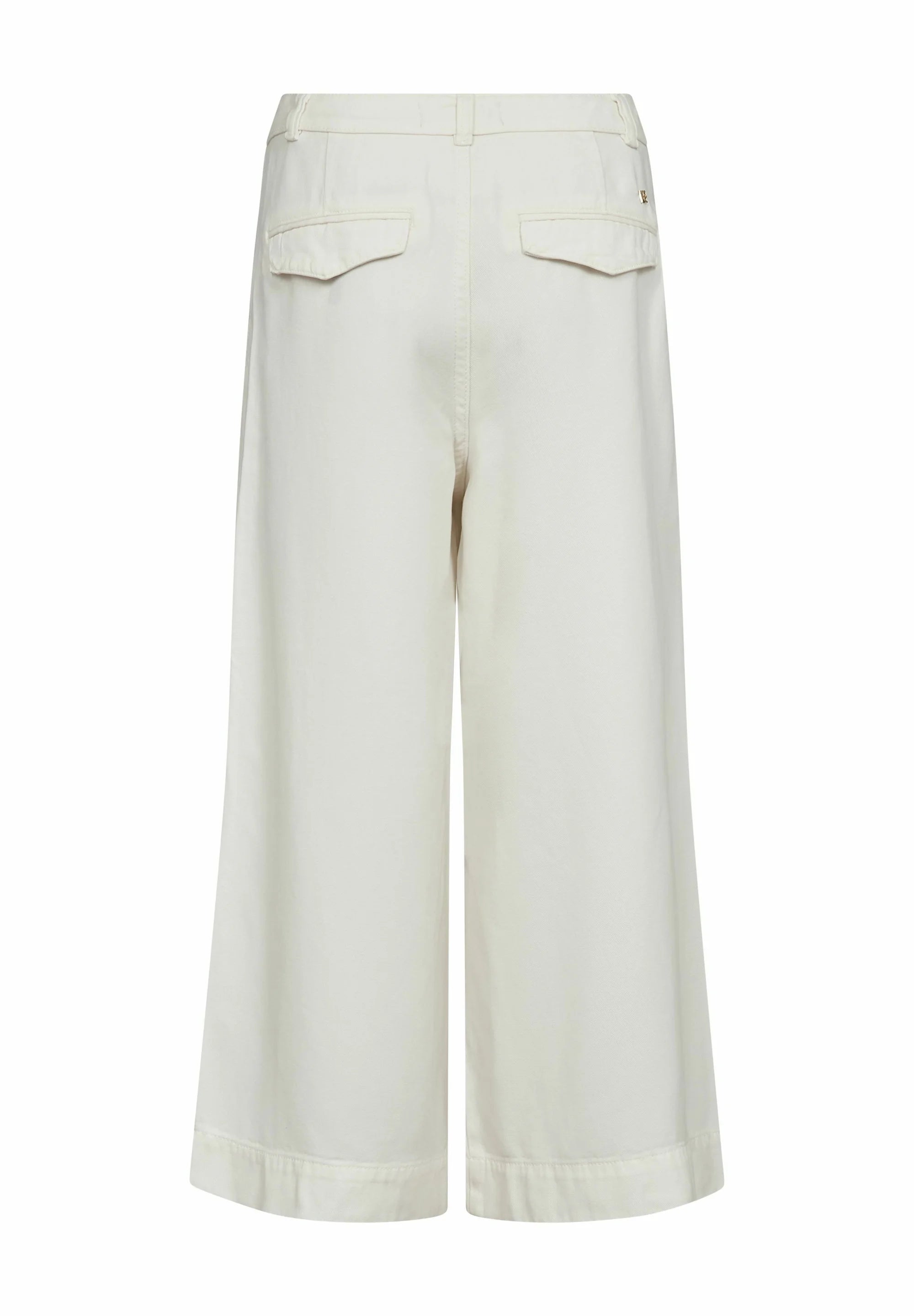 Mos Moshin leveät nilkkapituiset housut kesään. Edessä nappi ja piilovetoketju, takana taskut. Rento istuvuus. Materiaali 100% pehmeää ja hengittävää lyocellia. Yhdistä nämä luotto kesähousut varvastossujen ja värikkään t-paidan kanssa rentoon, mutta huoliteltuun asukokonaisuuteen.