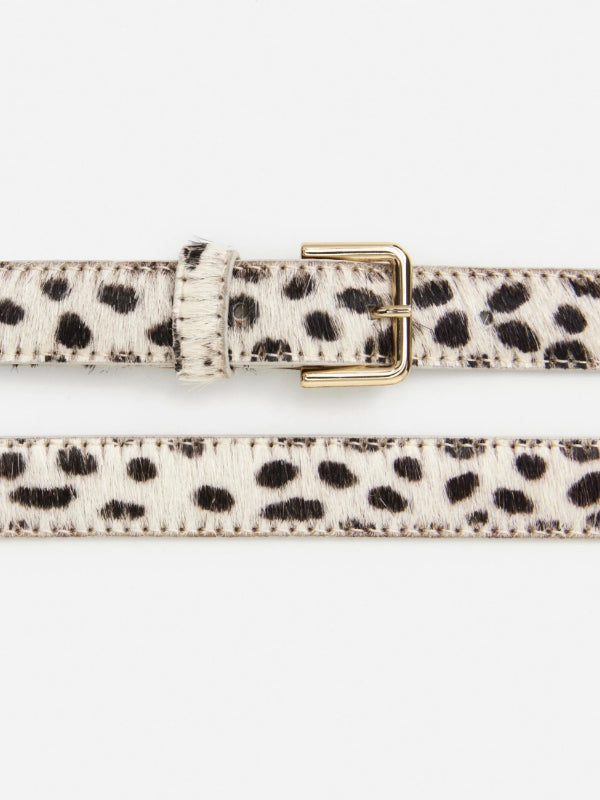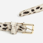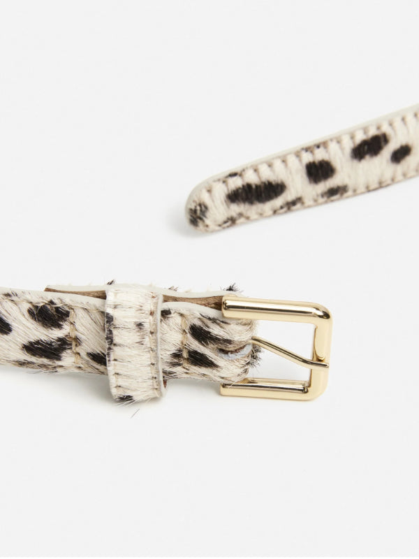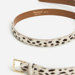 Flatteredin minimalistinen nahkavyö näyttävällä leopardikuosilla. Klassinen malli kultaisilla yksityiskohdilla. Saatavilla koossa S, M ja L.