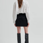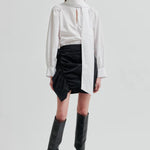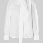 Second Femalen kaunis puuvillapusero irrotettavalla efektisolmiolla. Voit solmia sen eri tavoin tuomaan ilmettä tai jättää kokonaan pois. Hartioilla kivat rypytykset. Edessä yhden napin kiinnitysmekanismi.