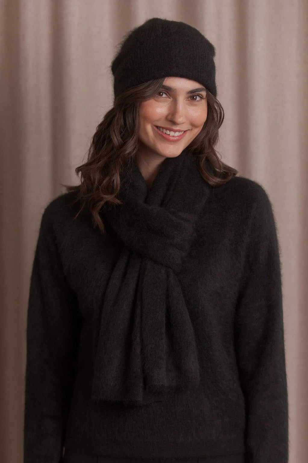 Karleen-kaulahuivi on valmistettu hienoimmasta, harjatusta cashmeresta, joka tunnetaan poikkeuksellisesta pehmeydestään ja lämmönsäilytyskyvystään. Materiaalina 100% cashmere tekee huivista miellyttävän kevyen, mutta samalla lämpimän kumppanin viileisiin päiviin.