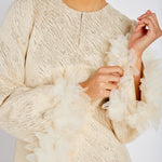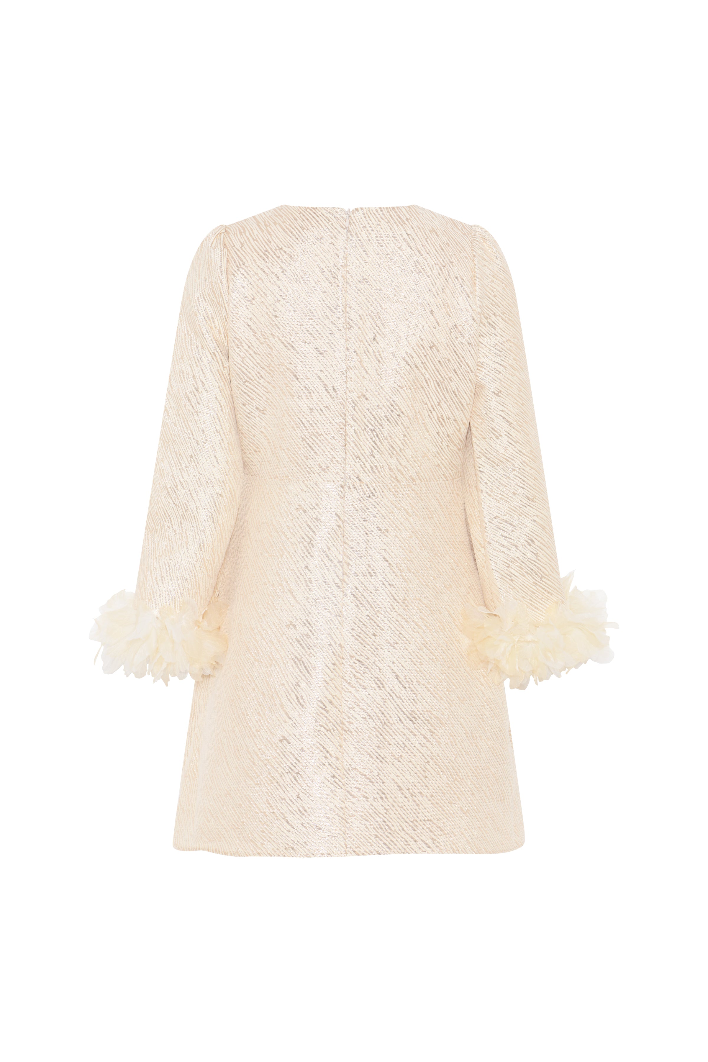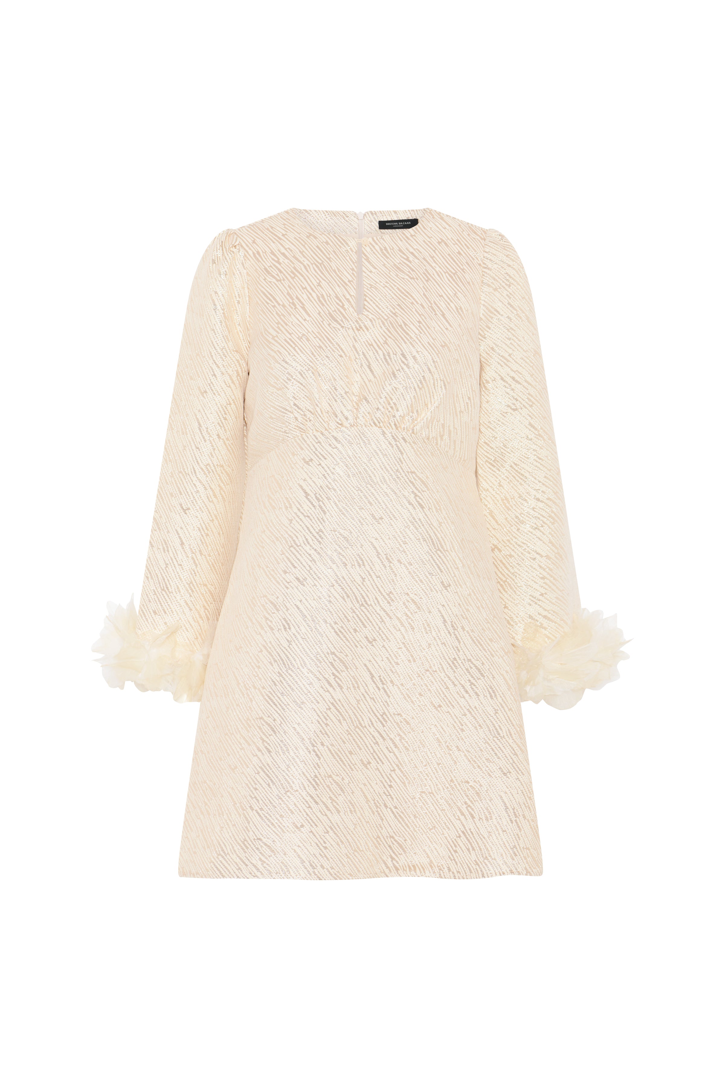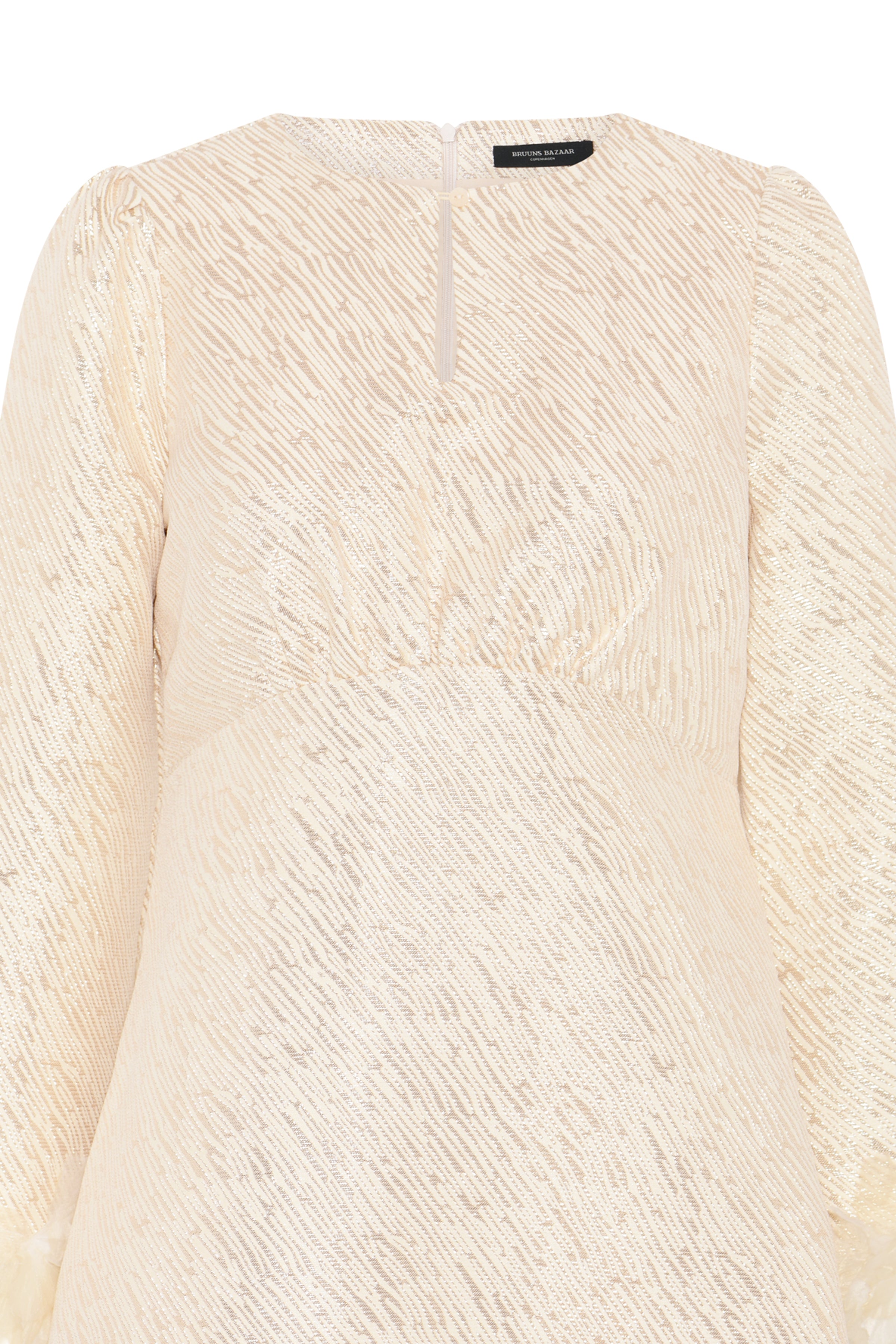Tämä Bruuns Bazaarin ihanuus on näyttävä valinta kauden juhlasesonkiin! Kultaisen värisen mekon hihoissa ihanat sulkayksityiskohdat, jotka tekevät mekosta näyttävän ja persoonallisen. Metallikuitu antaa kankaaseen kiiltoa. Yhdistä kitten heelsien tai muiden korkokenkien kanssa upea kokonaisuus.