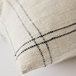 Tell Me Moren pellava tyynynpäällinen, jossa reunoilla mustat kudotut raitayksityiskohdat. Tämä tyynynpäällinen tuo ihanaa luonnollisuutta sisustukseesi. Piilovetoketjukiinnitys.