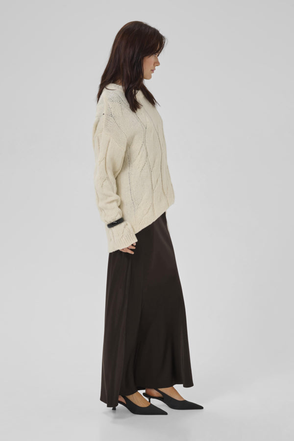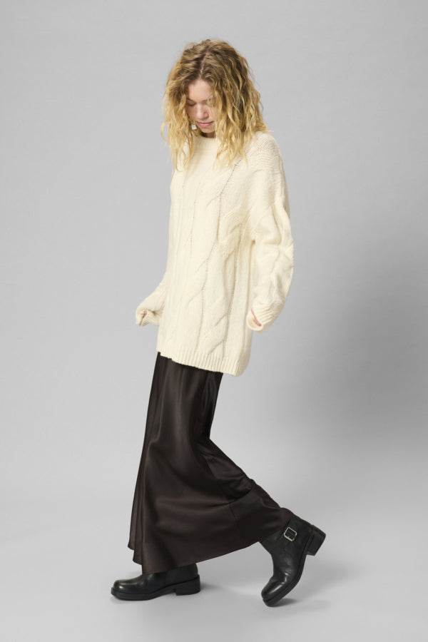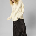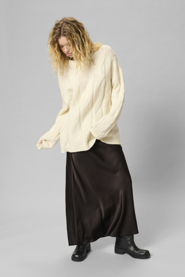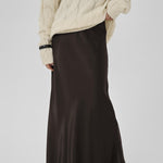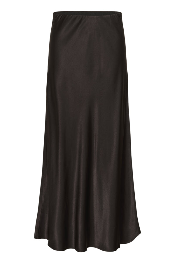 My Essential Wardroben näyttävä pitkä satiinihame. Kevyesti A-linjainen malli kuminauhavyötäröllä. Tämä hame muuntuu asusteita vaihtamalla arjesta juhlaan! Ihanan monipuolinen hame syksyn ja talven menoihin!