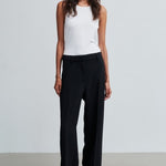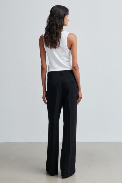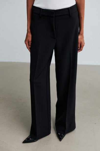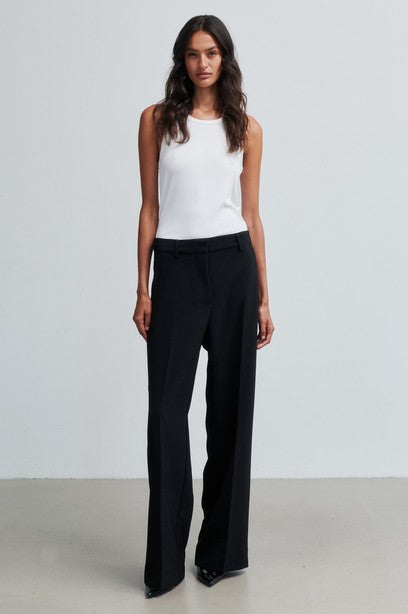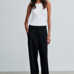 Second Femalen ajattomat suorat housut leveillä lahkeilla. Edessä sivutaskut, takana piilotaskut.