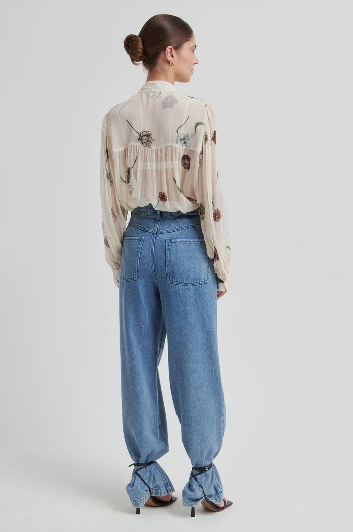 Second Femalen keväätn uutta: kaunis Florala sifonkipaita kukkakuosilla. Pieni pystykaulus näyttävällä napituksella. Edessä laskokset lisäämässä istuvuutta. Ilmavat pitkät hihat. Kevyttä viskoosia.