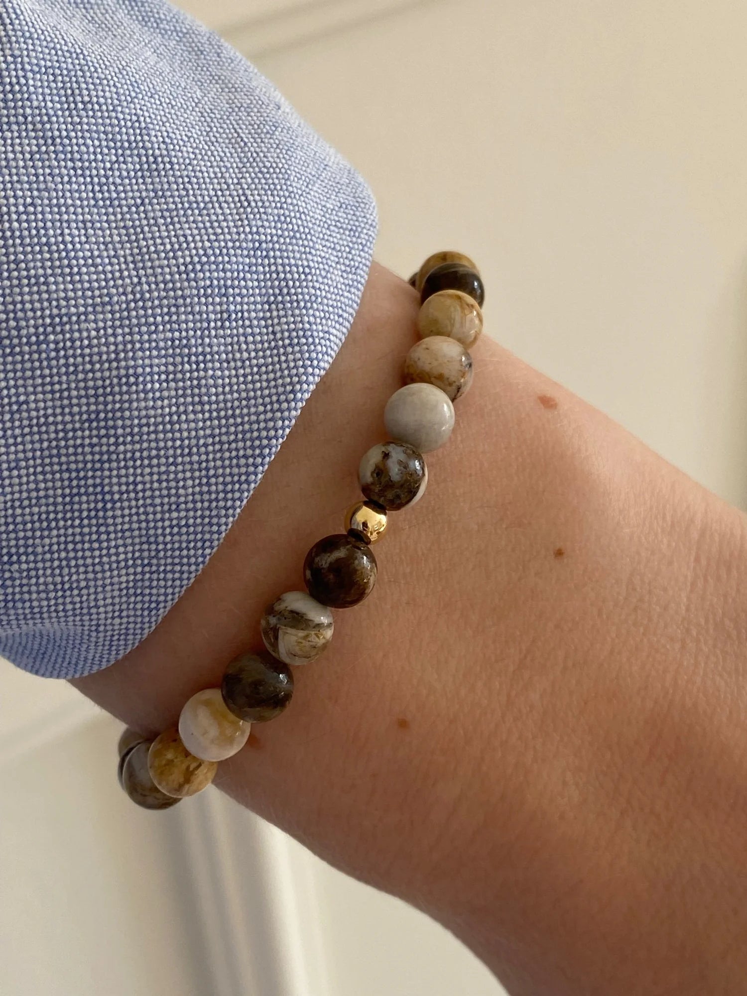 Joyemin ihana uutuus - käsintehty rannekoru, joka on valmistettu kauniista bambunlehtiakaatista. Upeat maanläheiset värit. Pidä rannekorua sellaisenaan tai kerrosta rohkeasti muiden sarjan korujen kanssa. Kaunis hopeinen tai kultainen yksityiskohta.