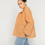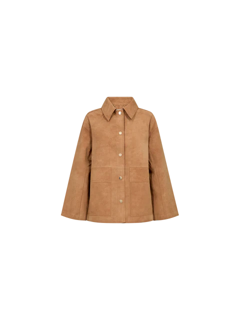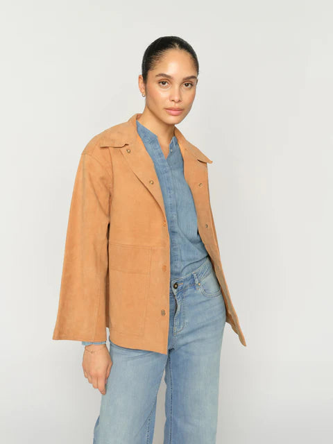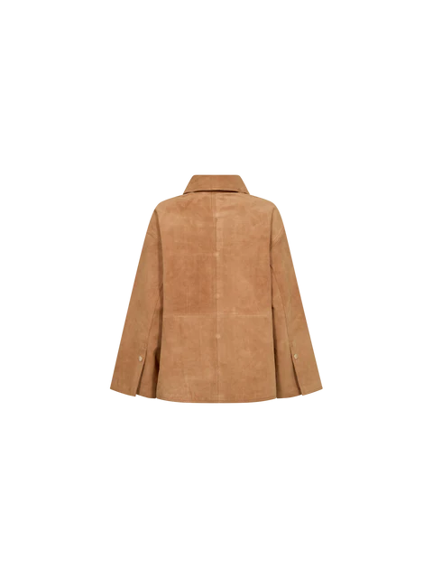 Mos Moshin tyylikäs mokkatakki rennolla mallilla. Paitiskaulukset, nappikiinnitys ja taskut edessä. Helmassa ja hihansuissa kivat halkiot tuomassa ilmettä. Rentoa tyyliä kevääseen!