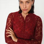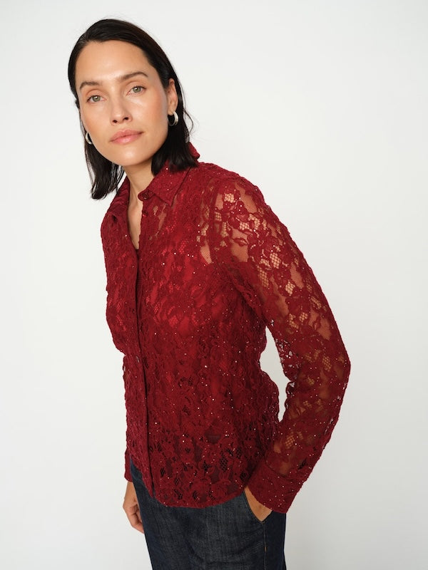 Mos Moshin ihastuttava pitsipusero talven juhliin! Slim Fit. Edessä napitus. Paidassa mukava ripaus bling blingiä pieninä paljetteina.
