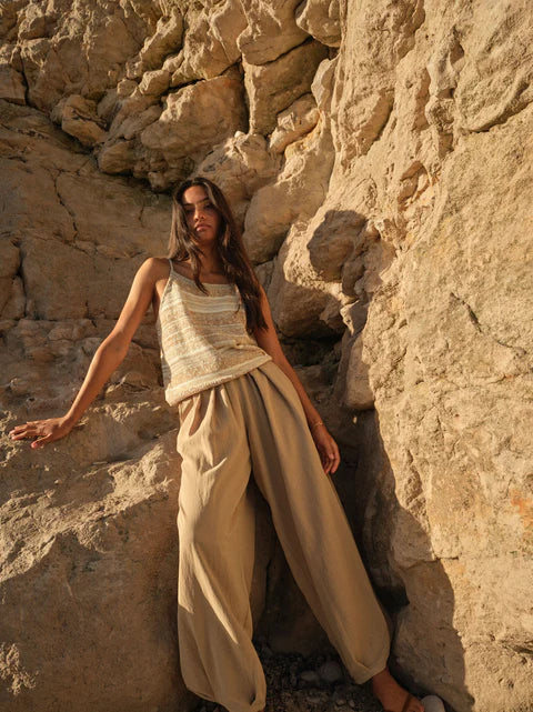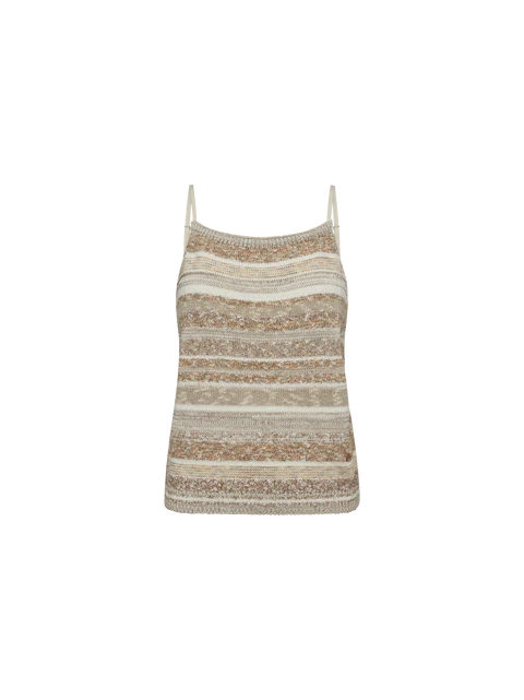 Mos Moshin raidallinen neuletoppi melange-efektillä. Kapeat säädettävät spagettiolkaimet.