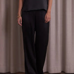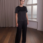 Leveälahkeiset satiinihousut, Black