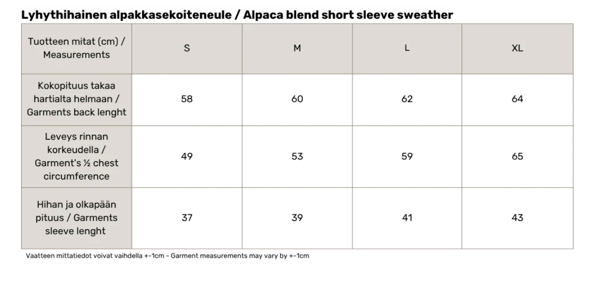 Materiaalina alpakkasekoite. Luethan neuleen hoito-ohjeet huolellisesti. Näin saat nauttia neuleestasi pitkään!
