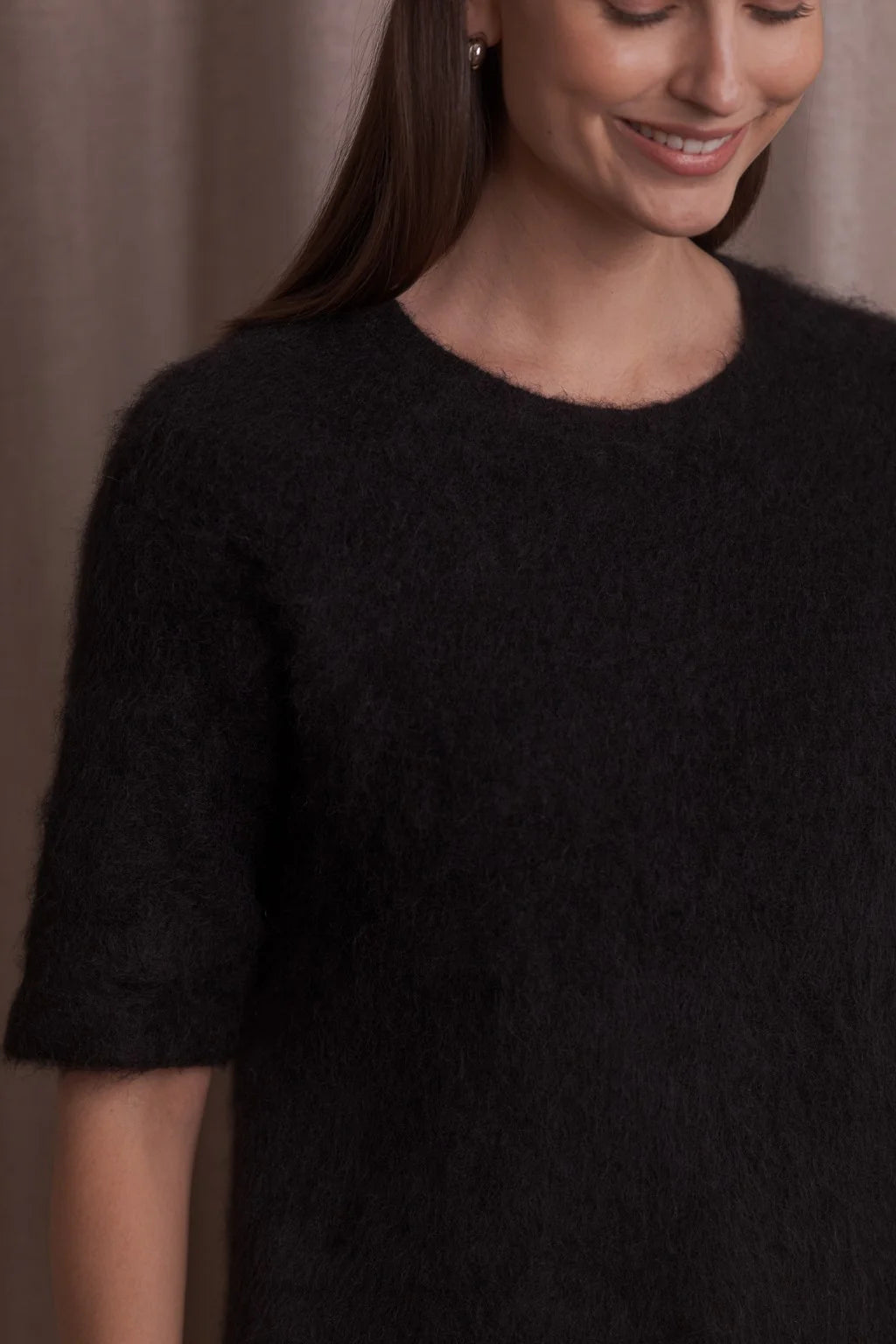 Lyhythihainen alpakkasekoiteneule, Black