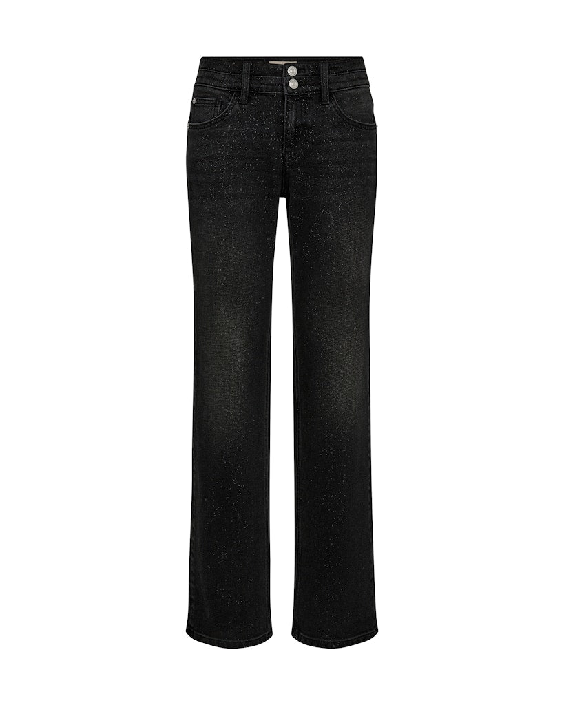 Mos Moshin uutuusfarkut, joissa mukana kiva ripaus kiiltoa. Suorat, normimittaiset lahkeet.