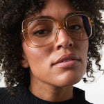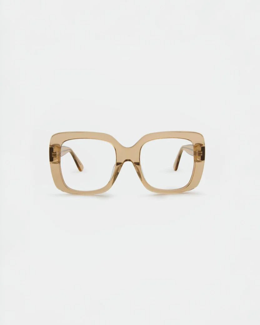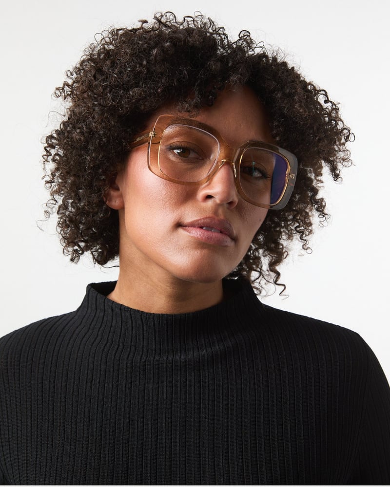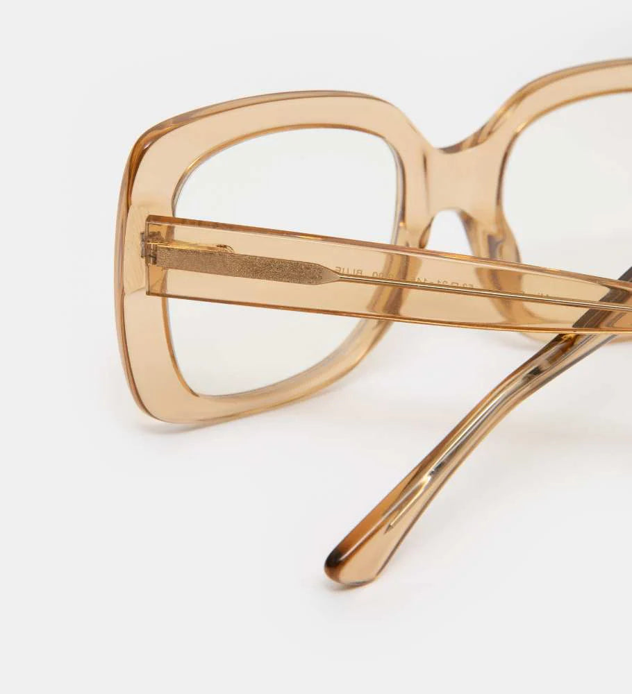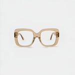 Nämä suuret, nelikulmaiset kehykset on valmistettu kestävästä asetaatista ja ne ovat kevyet käyttää. Karamellinsävyinen materiaali luo pehmeän, lämpimän vaikutelman.