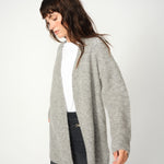 Mos Moshin pidempi Thora neuletakki neulepaidoista tuttua pehmeää materiaalia. Villan ja alpakan sekoite tekee tästä mukavan lämpimän sekä töissä, kaupungilla ja kotoillessa.