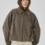 My Essential Wardroben ihastuttava bomber-mallinen nahkatakki. Materiaalina ihanan pehmeä mokkanahka. Tällä takilla tuot ilmettä pukeutumiseen. Helppo yhdistää monenlaiseen tyyliin!