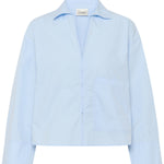 My Essential Wardroben ihanan rento boxy-mallinen paitis. Kiva jakkumainen malli tukevaa puuvillaa. Edessä tasku ja piilonapitus. Monipuolinen vaatekaapin perusvaate arkeen ja juhlaan! Kaunis sesongin vaaleansininen sävy.