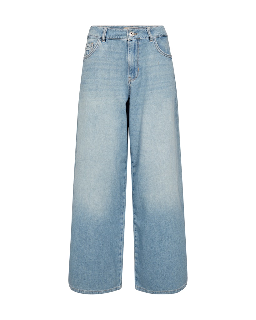 Mos Moshin ihanat uutuusfarkut leveillä lahkeilla. Mukavan korkea vyötärö ja pehmeä materiaali tekevät näistä taatusti kevään suosikkifarkut. Kiva vaalea pesu, joka on täydellinen myös tulevaan kesään!