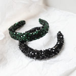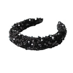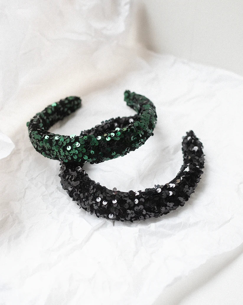 Gauhar Helsingin kimalteleva hiuspanta on tehty kruunaamaan juhla-asusi. Kauniit paljetit koristelevat hieman topattua hiuspantaa. Hiuspanta on mukava päässä.