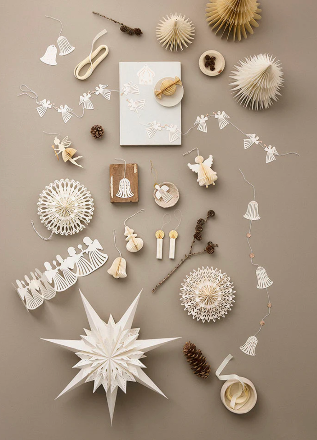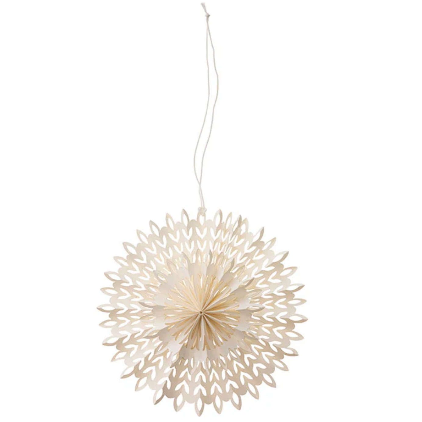 Bungalowin kaunis, herkkä paperitähti talvikodin koristeeksi. Tämä laserleikkauksella tehty tähti on täynnä pieniä yksityiskohtia.