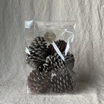 Pakkauksessa viisi käpyä, joiden koko 12-15 cm.