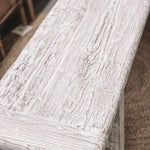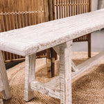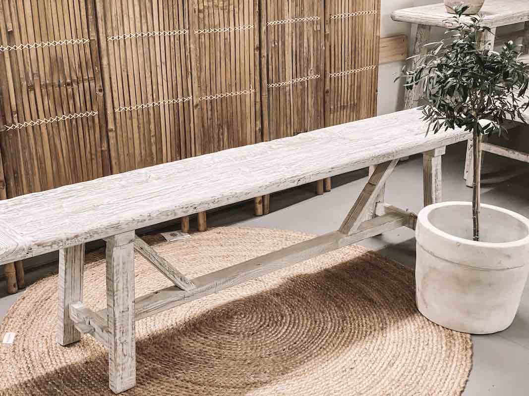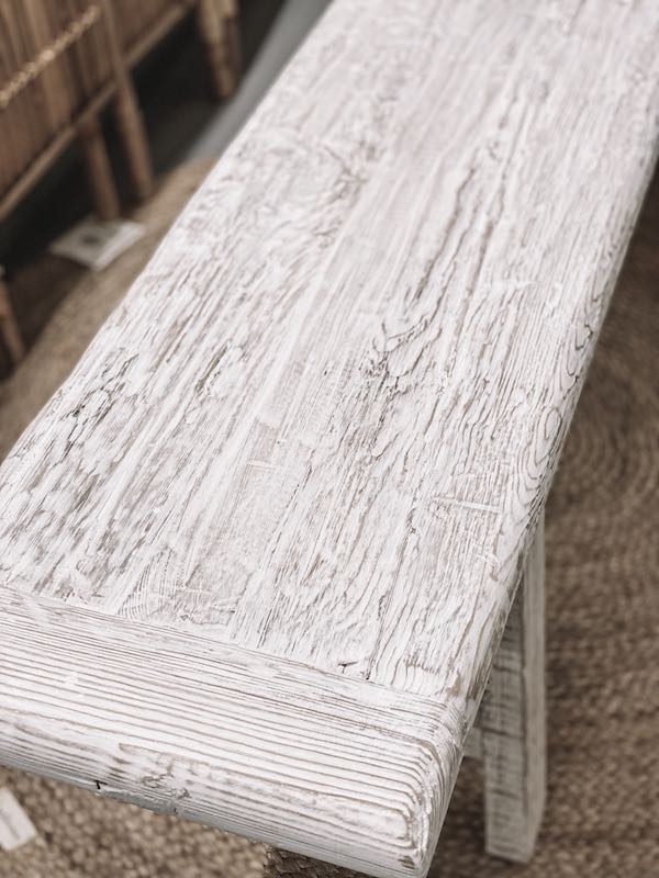 Ihana valkovahattu pidempi, leveä penkki kauniilla, eläväisellä pinnalla. Varaistuimeksi, vaatteiden väliaikaissäilöksi, sängyn päätyyn,... Kaunis off white sävy, jota voi muokata rosoisemmaksi raaputtamalla tai hiomalla kevyesti. Rosoisista puuhuonekaluistamme syntyy luonnollinen ilme kotiisi!