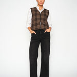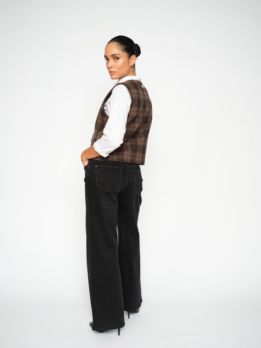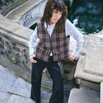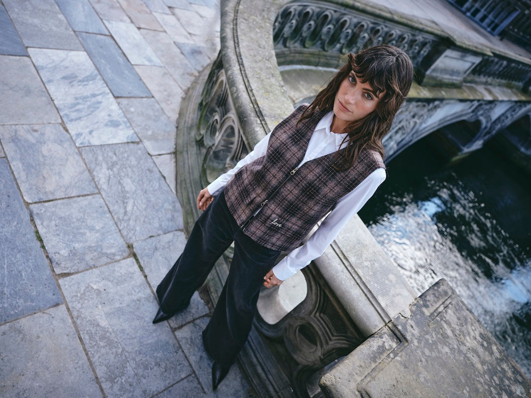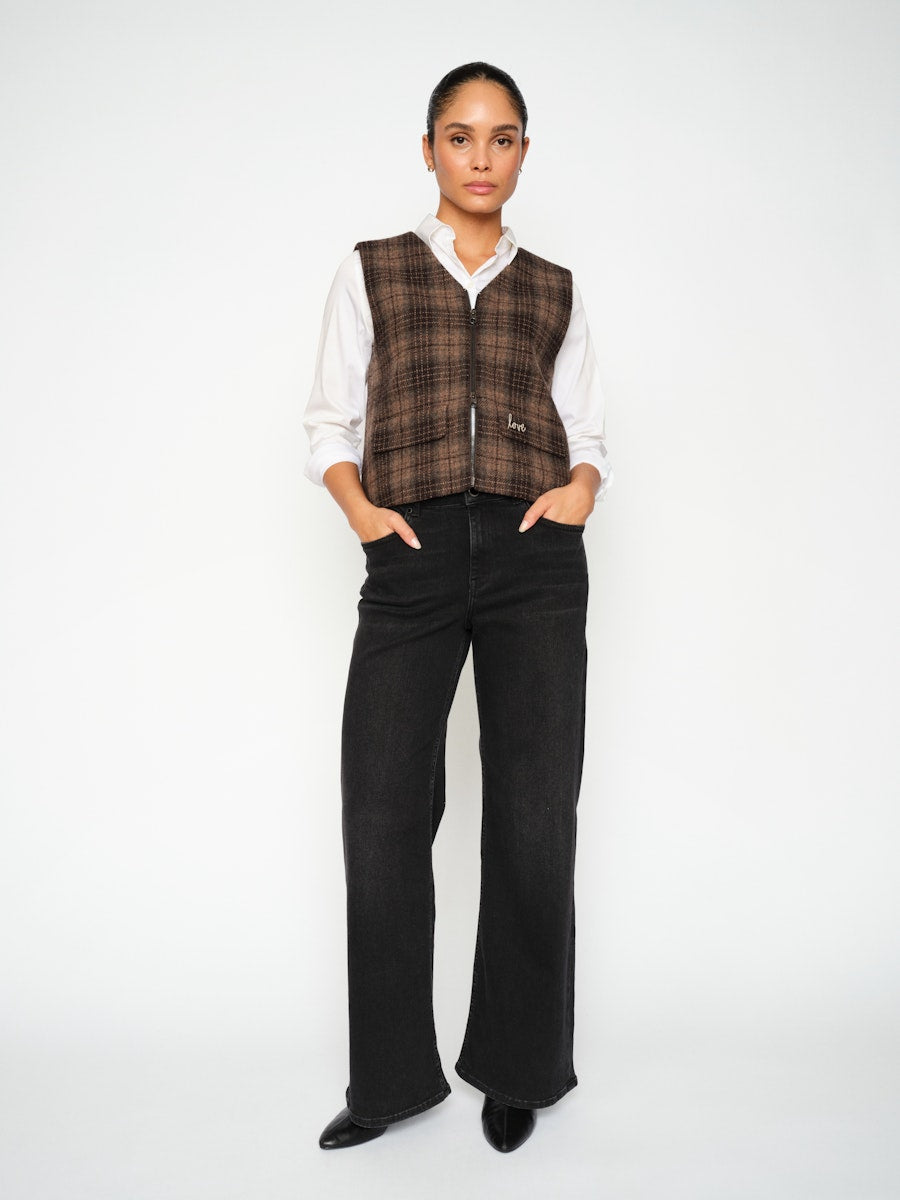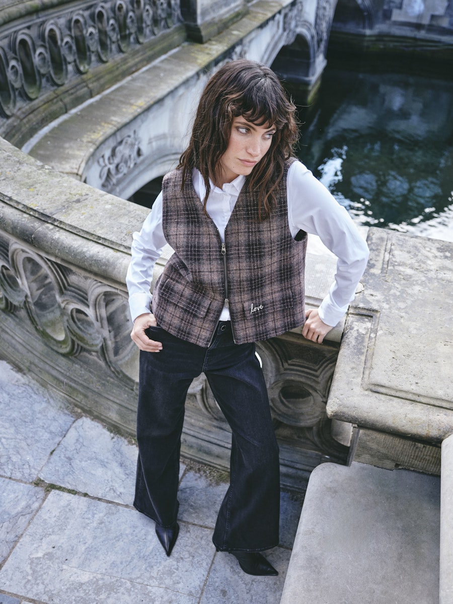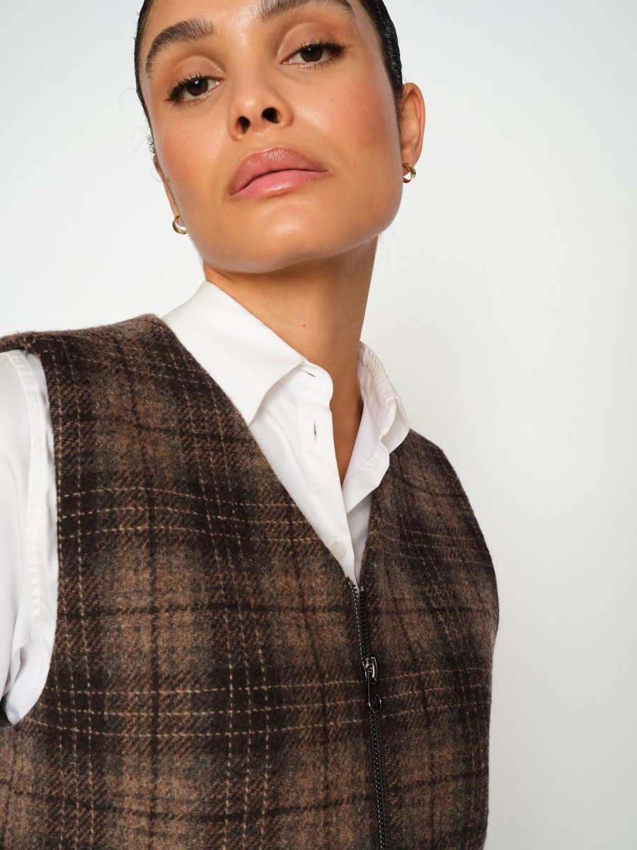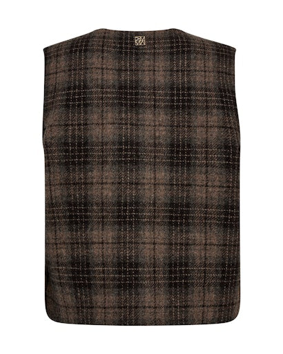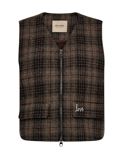 Mos Moshin syksyn uutta: ihastuttava ruutuliivi 100% villaa. Liivissä edessä vetoketjukiinnitys. Villaliivi lämmittää mukavasti vaikkapa toimistolla ja tuo ilmettä asuun kuin asuun.